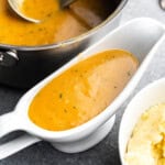 Bring the mixture to a simmer, whisking constantly, and cook until the gravy thickens to your desired consistency, about 2–3 minutes. Serve hot in a gravy boat.